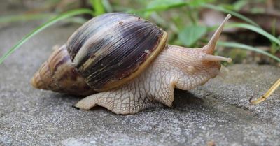 Exotic snails and slugs can cause severe damage to Australian agricultural systems and natural areas, and can spread diseases which affect humans, animals and plants. They are able to spread as eggs, juveniles or adults, and these can be attached to vessel structures, cargo, shipping containers, machinery or motor vehicles. The giant African snail (often referred to by biosecurity officers as GAS) can have a shell length of up to 20 cm, and eggs which are about 5 mm wide.